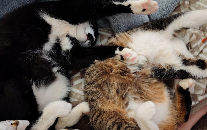 ↓ゲームをしていたときの、うちの猫たちの寝姿(シンクロ)![]()